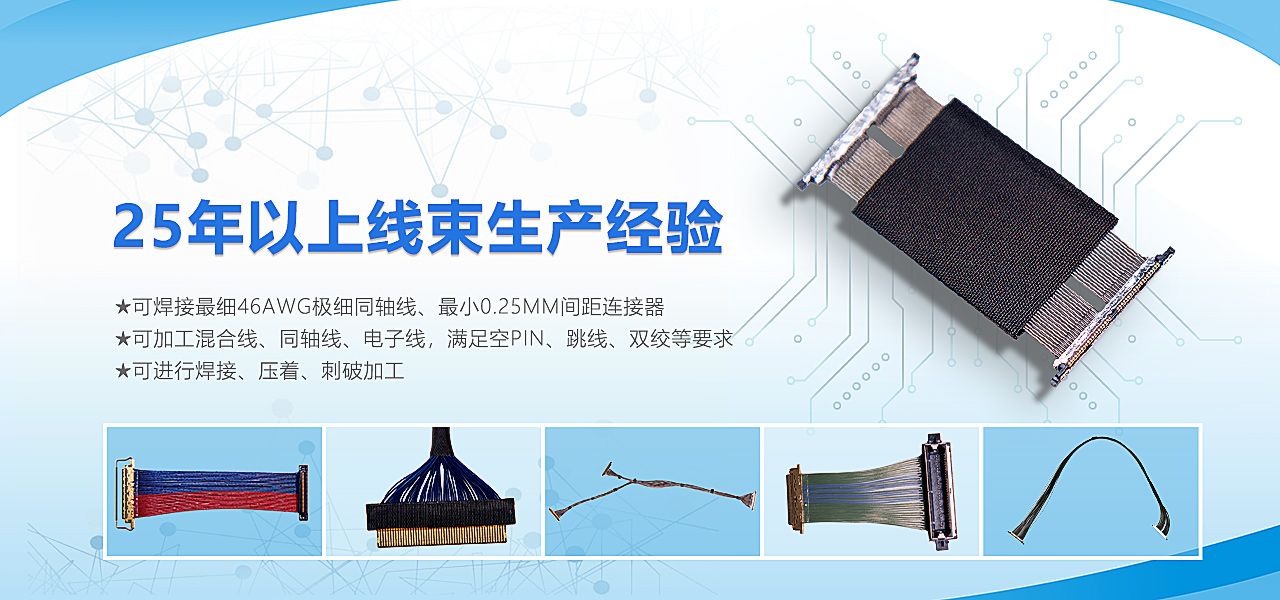 公司主營(yíng)極細(xì)同軸線(xiàn)束、車(chē)載信號(hào)線(xiàn)束、航空頭線(xiàn)束、RF射頻線(xiàn)、電子接插件、微動(dòng)開(kāi)關(guān)等